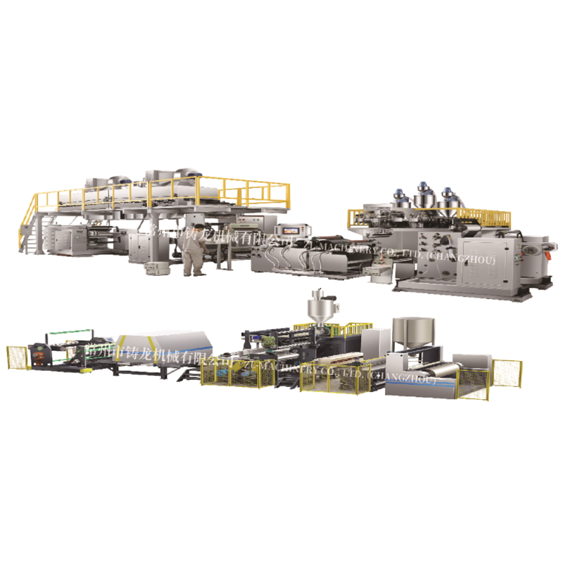 鑄龍ZLX-LM擠出淋膜復合機組系列,利用PE/EVA/PP/TPU/POE等熱塑材料的擠出工藝,對基材進行單/雙面覆膜或多層復合,形成具有多種功能的復合制品。該系列設備擁有多種模塊化結構,通過模塊組合,可以實現(xiàn)低速、中速、高速、超薄、超高克重淋膜復合功能,適用淋膜基材涵蓋薄膜、無紡布、珍珠棉、發(fā)泡卷材、紙、紡織品、編織布、針刺布、水刺布、網(wǎng)格布、功能隔膜、金屬箔、鍍鋁膜等。通過單機、雙機、多機以及單層/共擠、預熱、預涂、復合等功能選配,可以滿足食品、外包裝、裝飾品、建材、農(nóng)業(yè)、光電、車船航天功能材料等領域的廣泛需求。